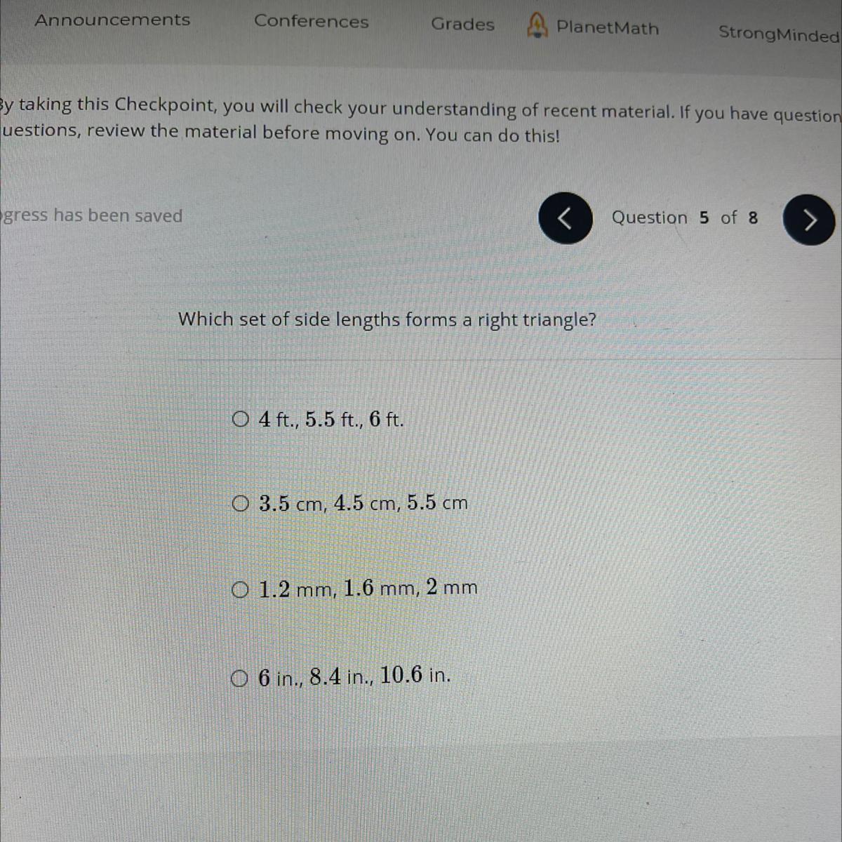 When you follow these steps with the remaining three options, you'll find that the third option (C) makes a right triangle.
