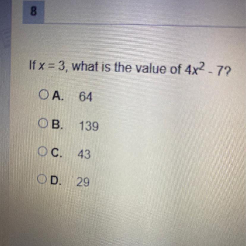 If x= 3, what is the value of 4x2 - 7?