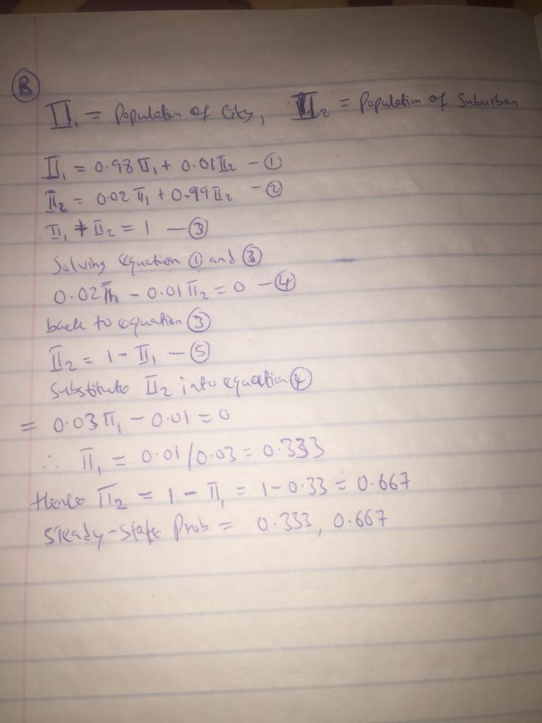 c ) Using the steady-state probabilities, There will be an increase in the Suburb population and a decrease in City population