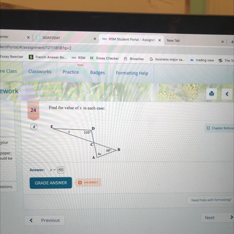 ∴ 4x + 49 = 100 + x