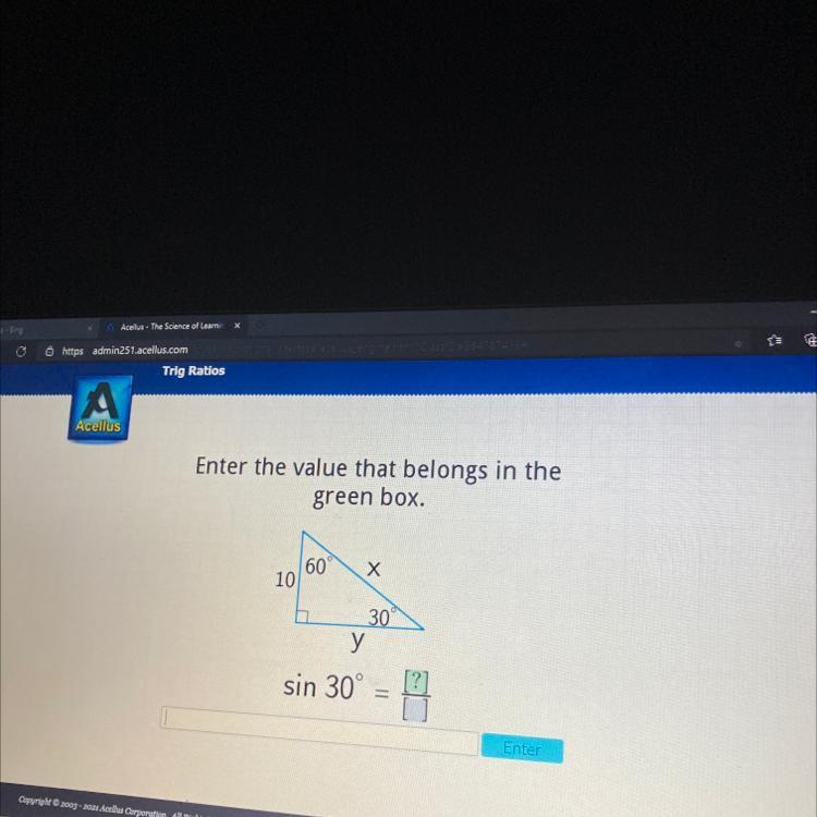 Therefore, answer will be sin(30)° = \frac{10}{x}.