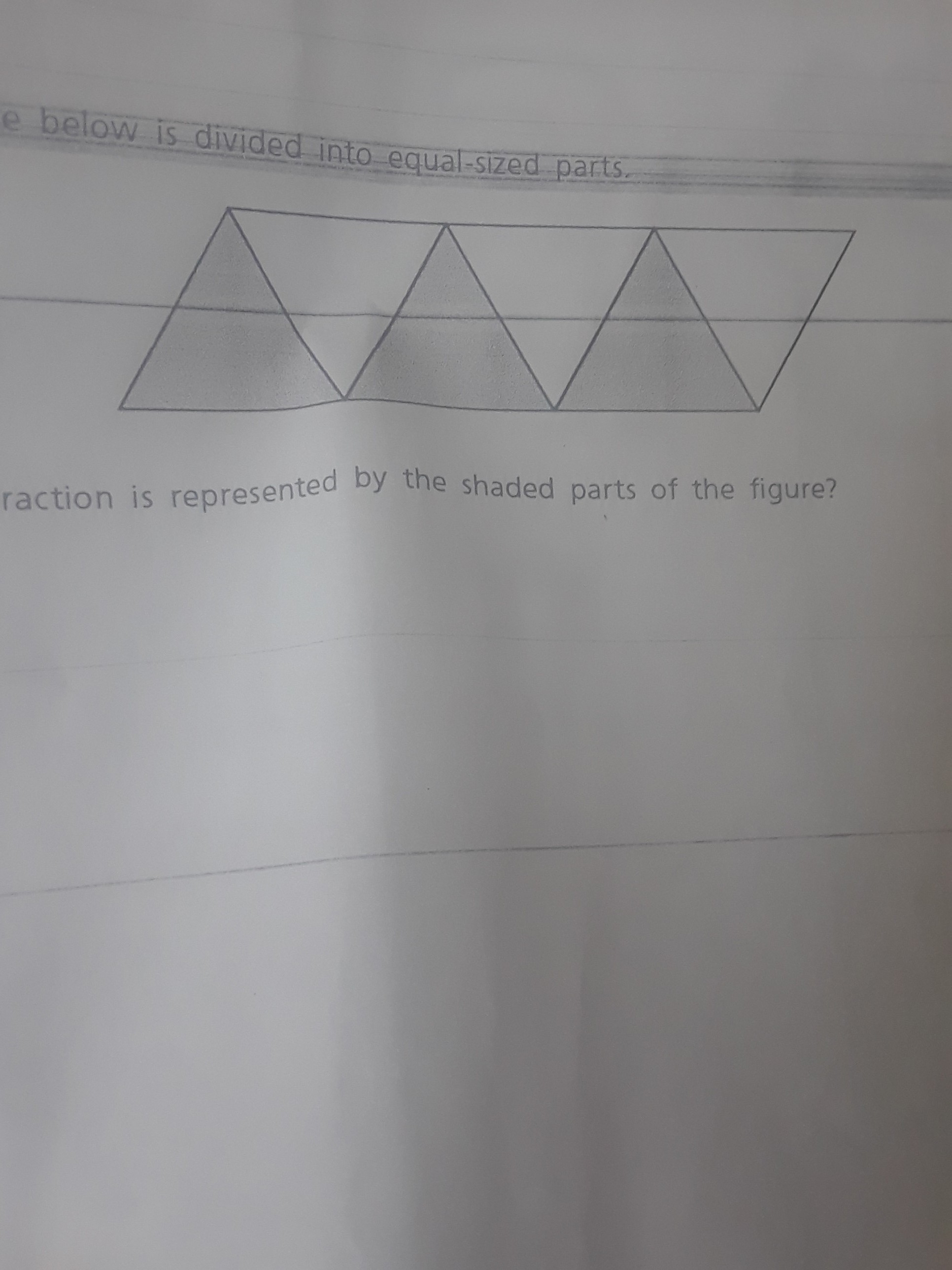 The figure below is divided into equal sized parts. Which fraction is represented by the shaded parts of the figure? A)1/3 , B)3