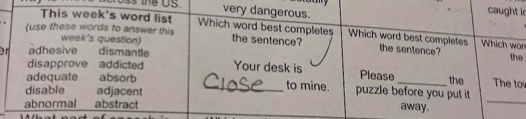 I neee a word from the words list to help me with the third box