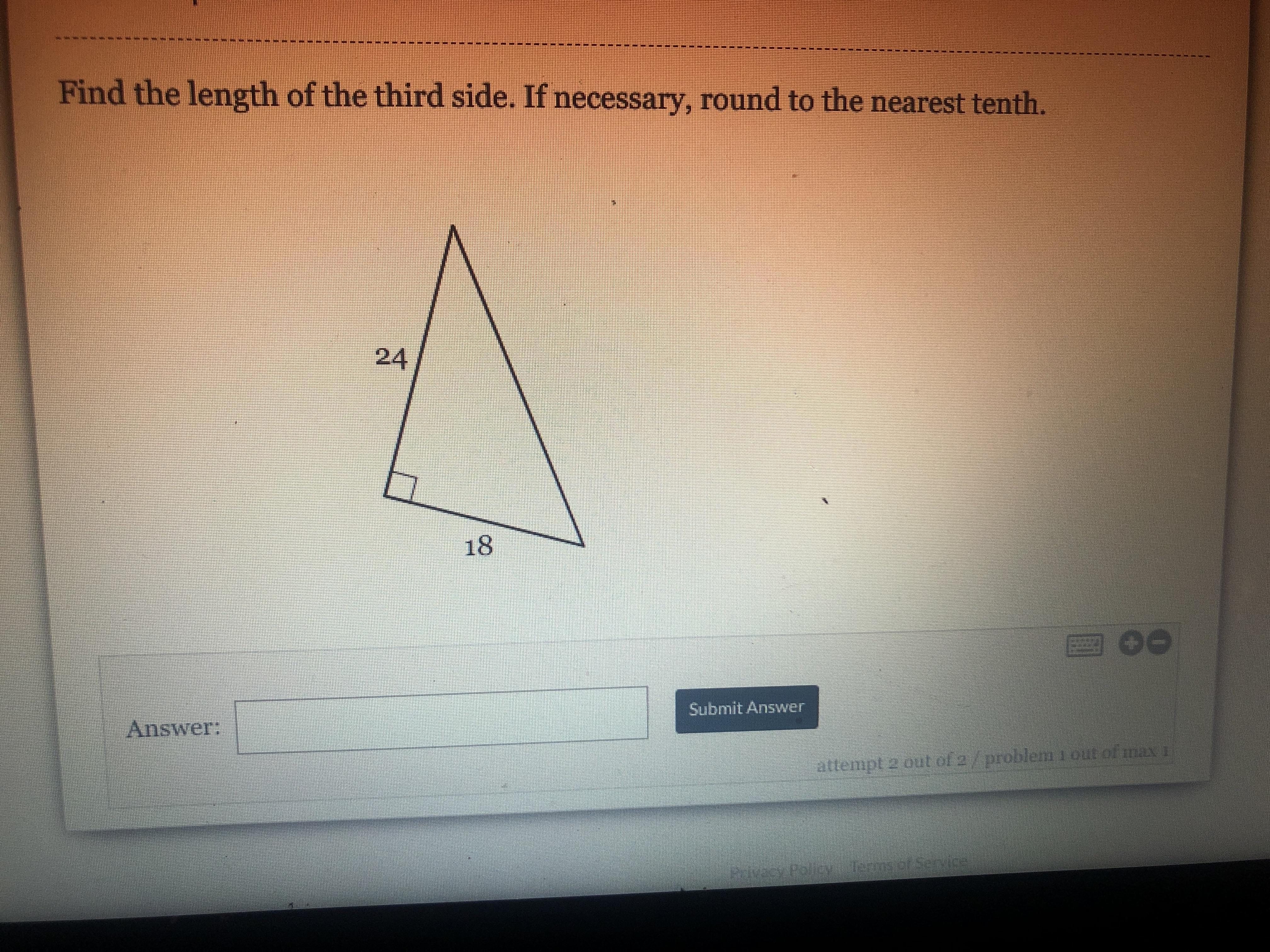 Find the length of the third side.if necessary, round to the nearest tenth 24 18