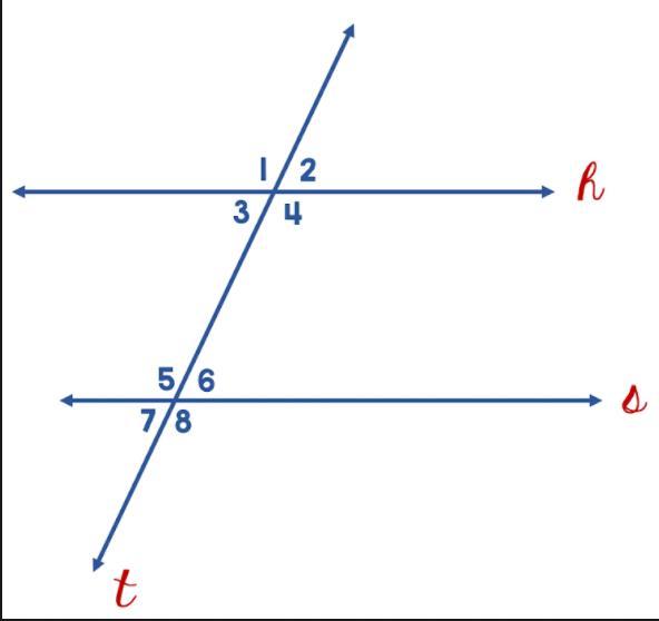 In the diagram below, lines h and s are parallel. If the m∠2 = 70°, what is the angle measurement of m∠3?