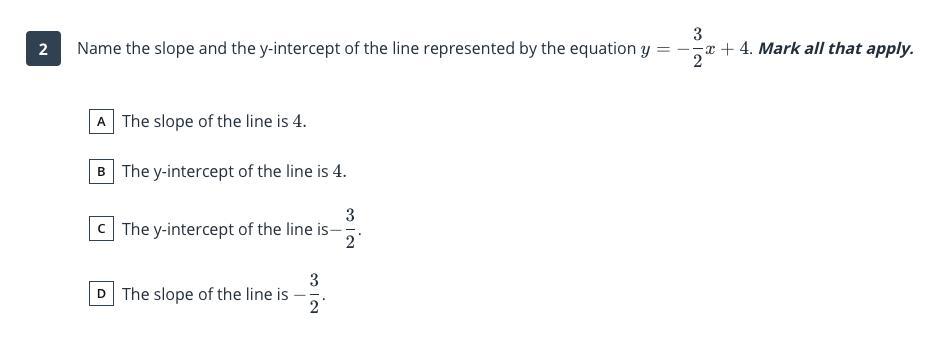 A is the correct answer because the equation matches option A.