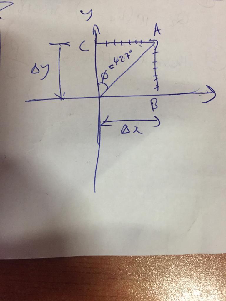 looking at triangle ABC ; Δx = (OA) sin∅