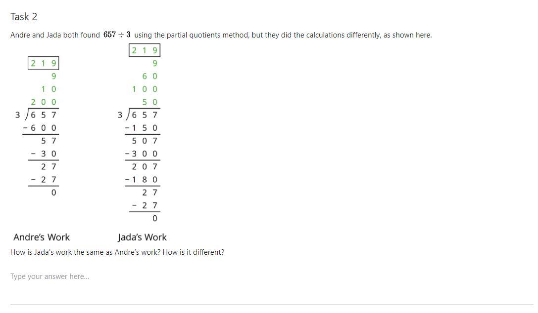 andre worked with bigger numbers when dividing to do it faster but they were both the same