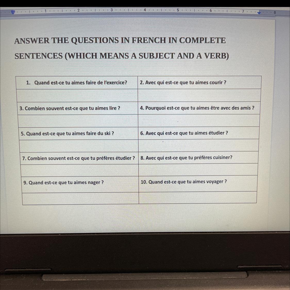 5.Le ski j'aime le faire sur le weekend quand il ya pas de l'école.