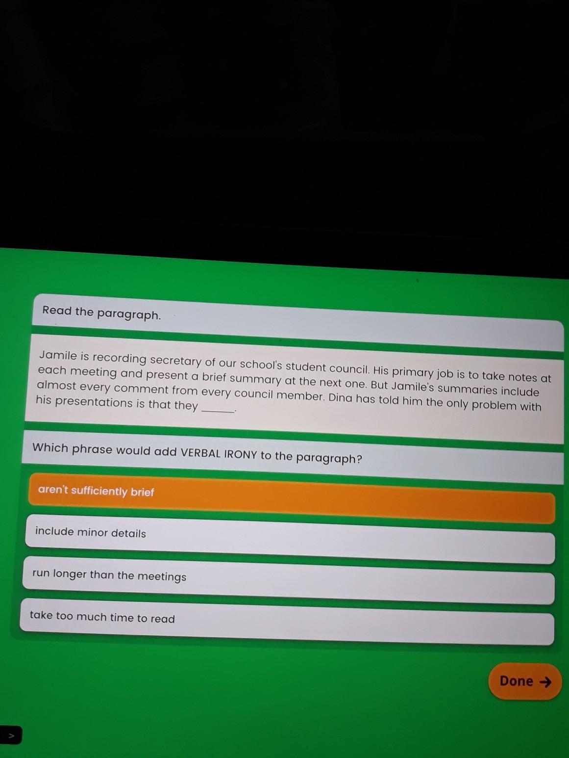 Because he is supposed to make a short breif summary but then if someine as ti say they werent breif that would be right but if they were to say the werent detailed enough that would create irony because they are supposed to be breif.