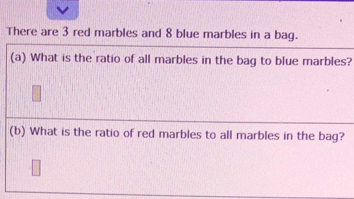 2) Since there are 36 red marbles, you should know to multiply the ratio by 12.