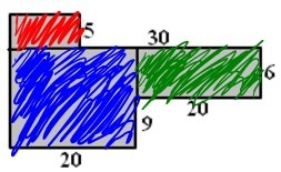 The base of the blue shape is 20, the height is (9 + 6) 15.