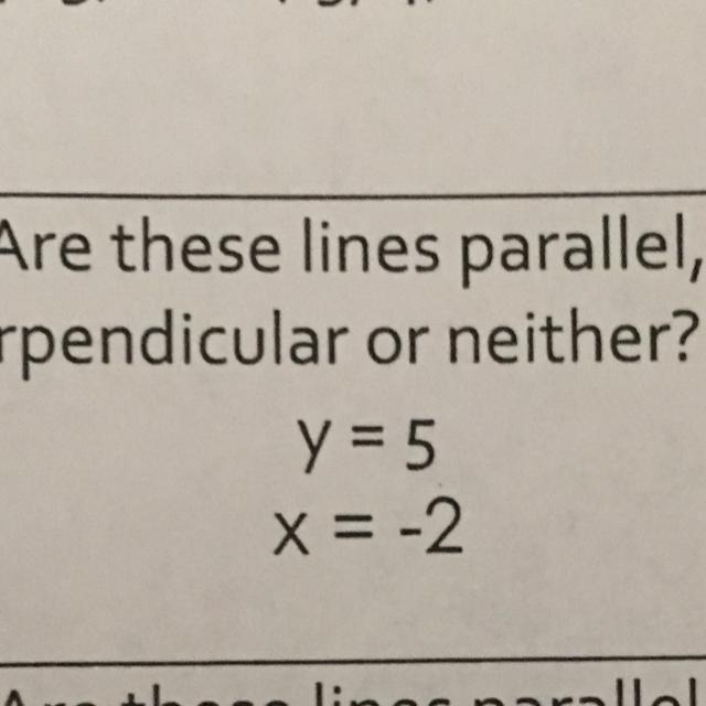 These lines are perpendicular to each other y=5 is an horizontal line passing through y=5 and x=-2 is a vertical line
