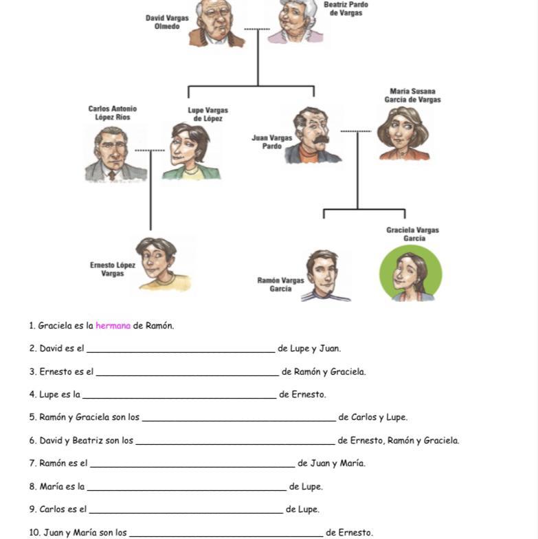 6. David y Beatriz son los abuelo y abuela (i forgot the word for grandparents sorry) de Ernesto, Ramon, y Graciela