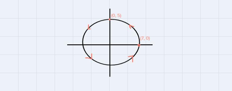 when Θ = 0 , then x = 7*cos0 = 7*1 = 7 , and y = 5*sin0 = 5*0 = 0
