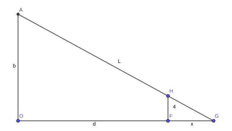 We have not been asked anything about "b", so we can basically ignore it. Using the Pythagorean theorem, we find the length GH in the attached drawing to be ...
