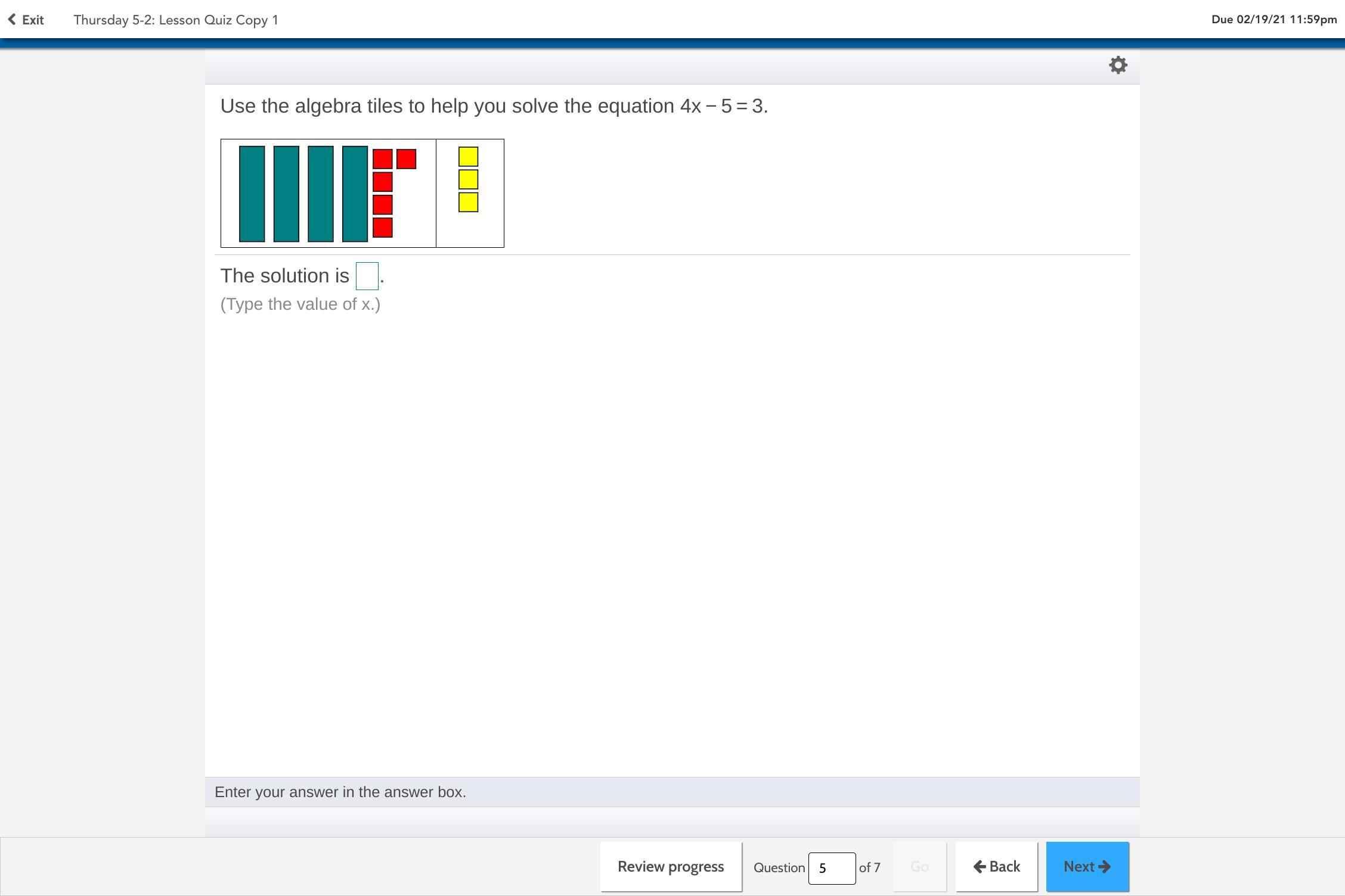 In order to get x by itself you need to first add 5 to both sides. Once you do that it should look something like this