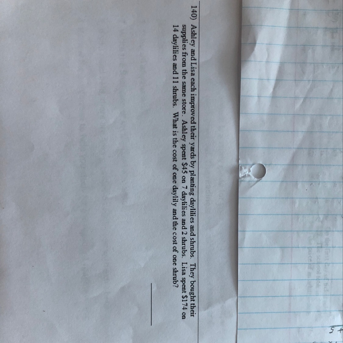 We know that Ashley bought 7 daylilies and 2 shrubs, so she paid