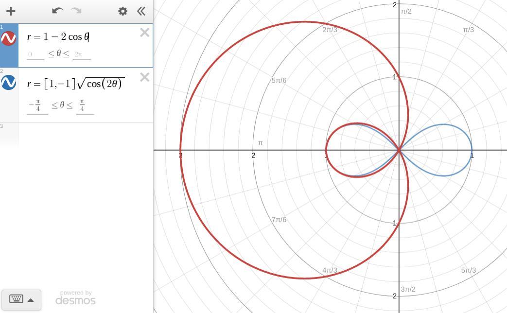 (b) The graph is symmetrical about both the horizontal and the vertical axis. It has a maximum value of r = 1 at θ = 0 and θ = π. (Note this curve has subtle differences from the inner loop of the above curve.)