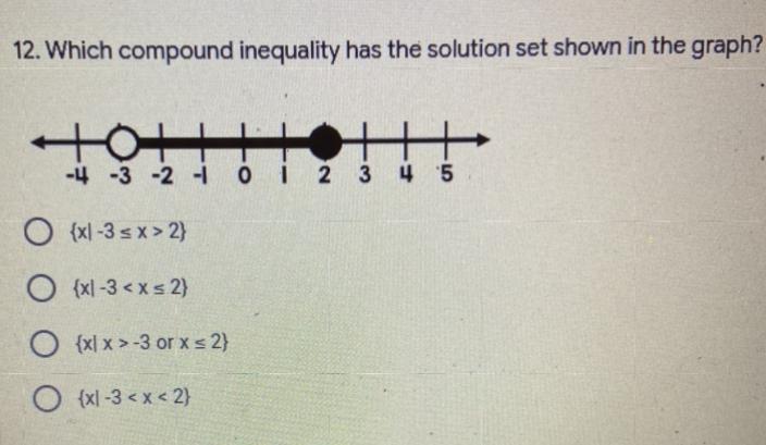 The unshaded "O" on "-3" implies that -3 is not included. Which means -3 < x or x > -3.