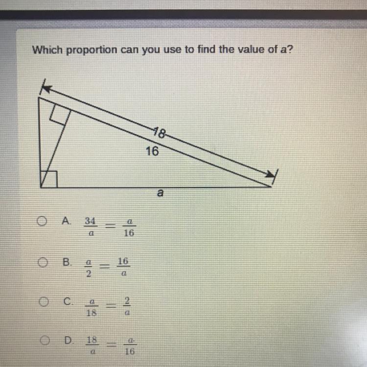 Which proportion can you use to find the value of a? I NEED HELP, PLEASE!!!