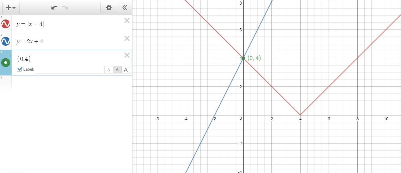 The point (0,4) is the solution of the system of equations because their graphs intercept at that point.