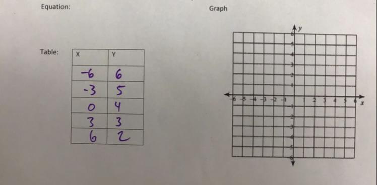 y = -1/3x +4 . . . . equation