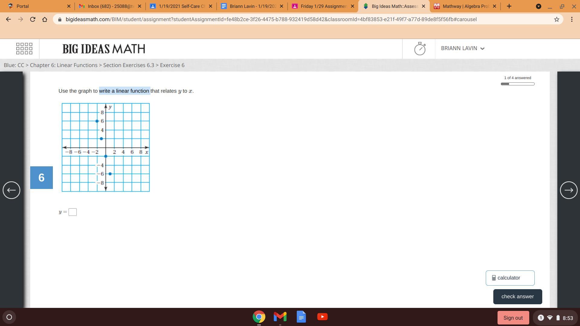 The equation of the line in the slope-intercept form is y=5/2−x/2.