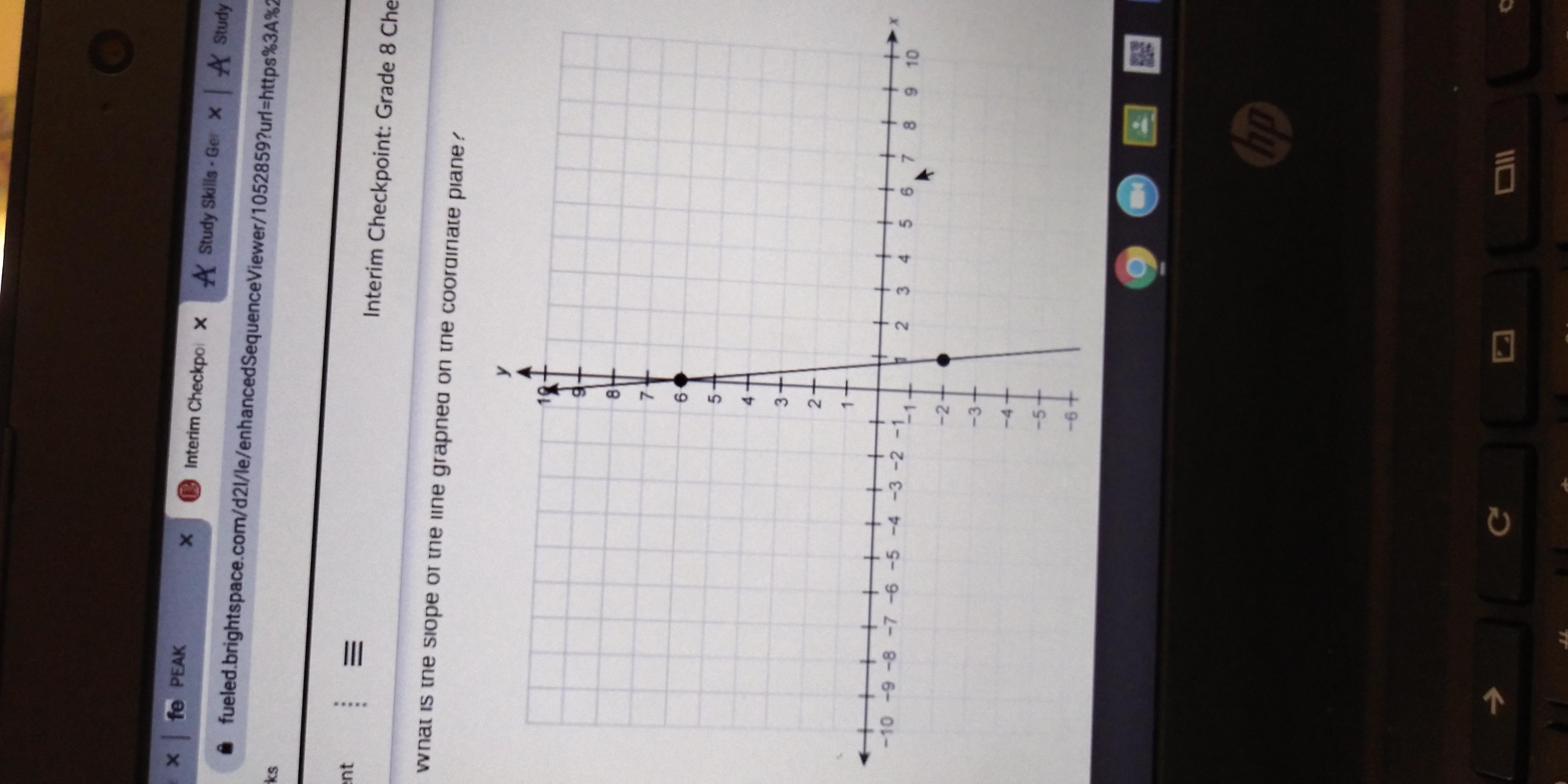 What is the slope of the line graphed on the coordinate plate? (1,-2) (0,6)