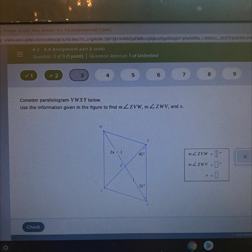 Given this information we need to find x, ∠ZVW and ∠ ZWV