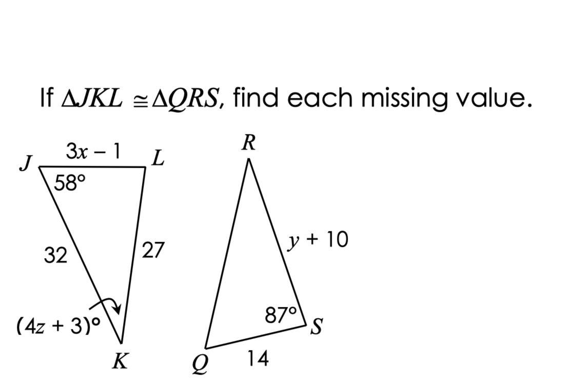 JK<u>L</u>≅P<u>Q</u>R
