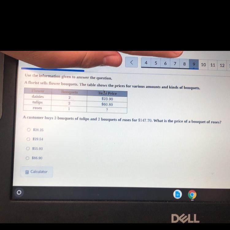 A florist sells flower bouquets. The table shows the prices for various amounts and kinds of bouquets.