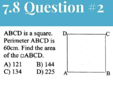 ABCD is a square with P=60. This means all sides are the same, so side = 15