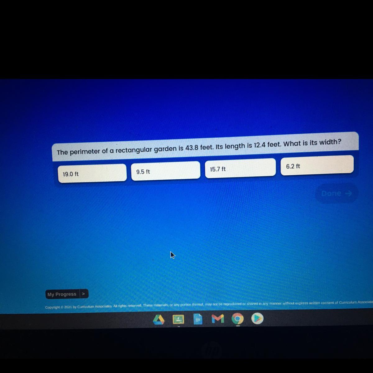 19/2= 9.5ft