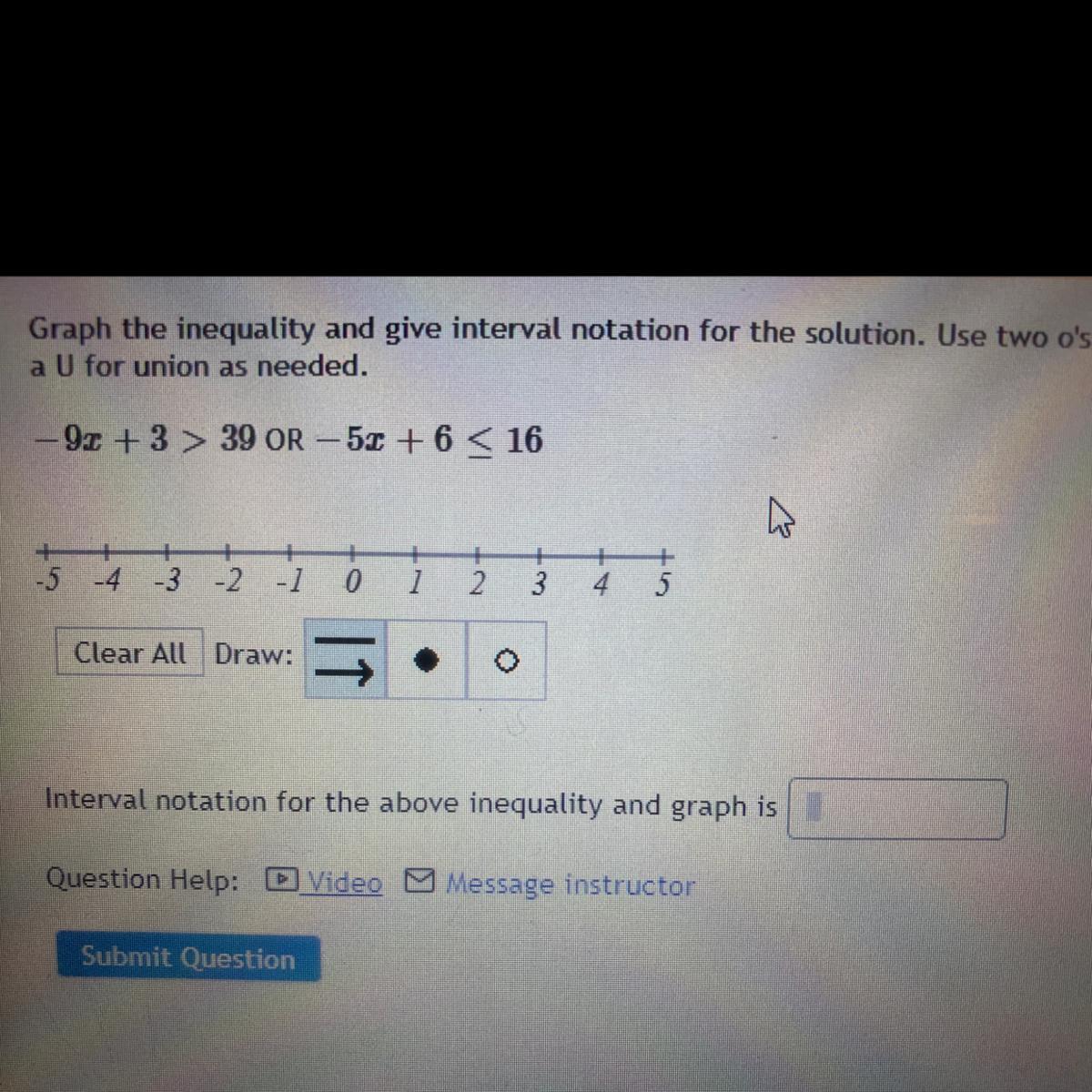 HELP PLEASE -9x + 3 > 39 OR - 5x + 6 < 16