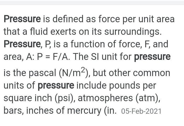 Pressure measurement is the analysis of an applied force by a fluid (liquid or gas) on a surface. Pressure is typically measured in units of force per unit of surface area.