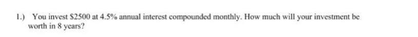 A = 2,500.00(1 + 0.045/12)(12)(8)