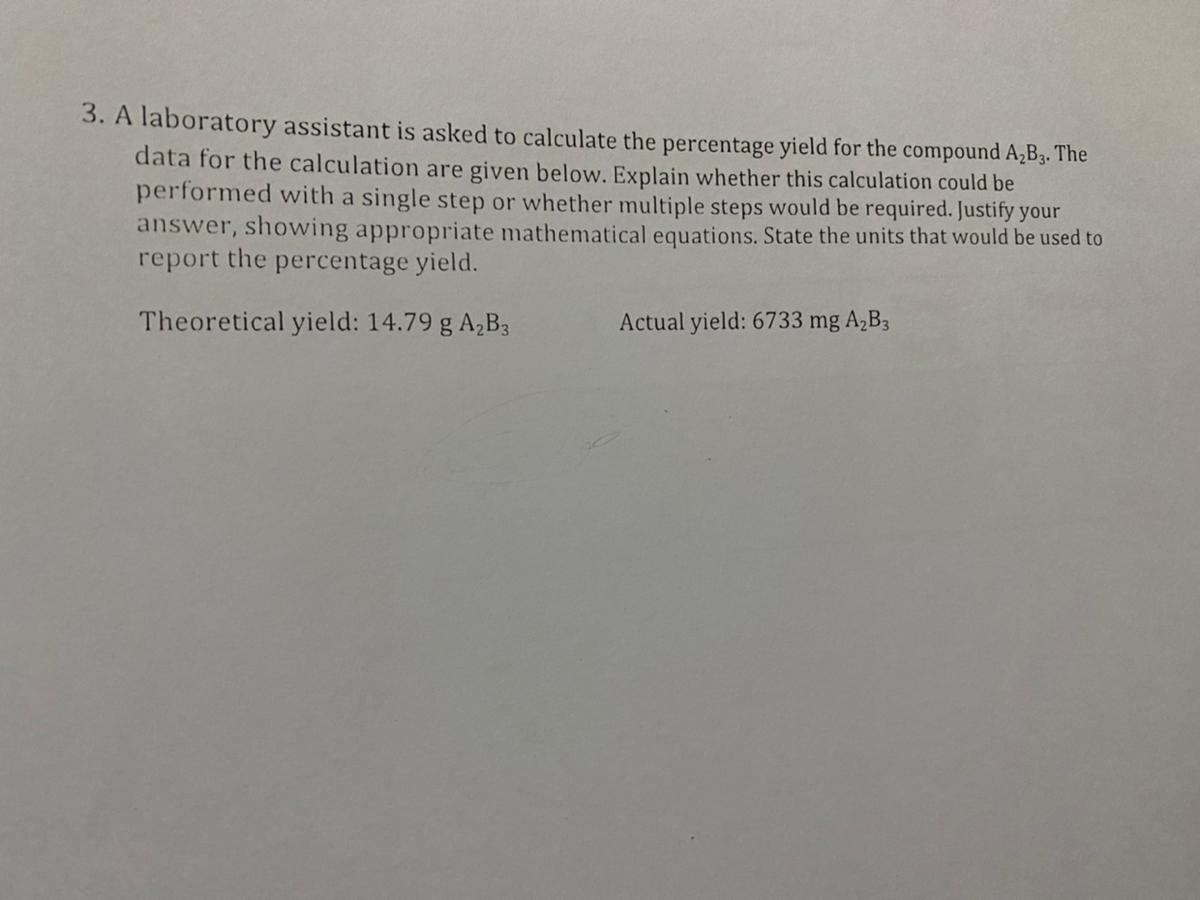 1. The calculation will require multiple steps because the unit of measurement of the theoretical and actual yield is different.
