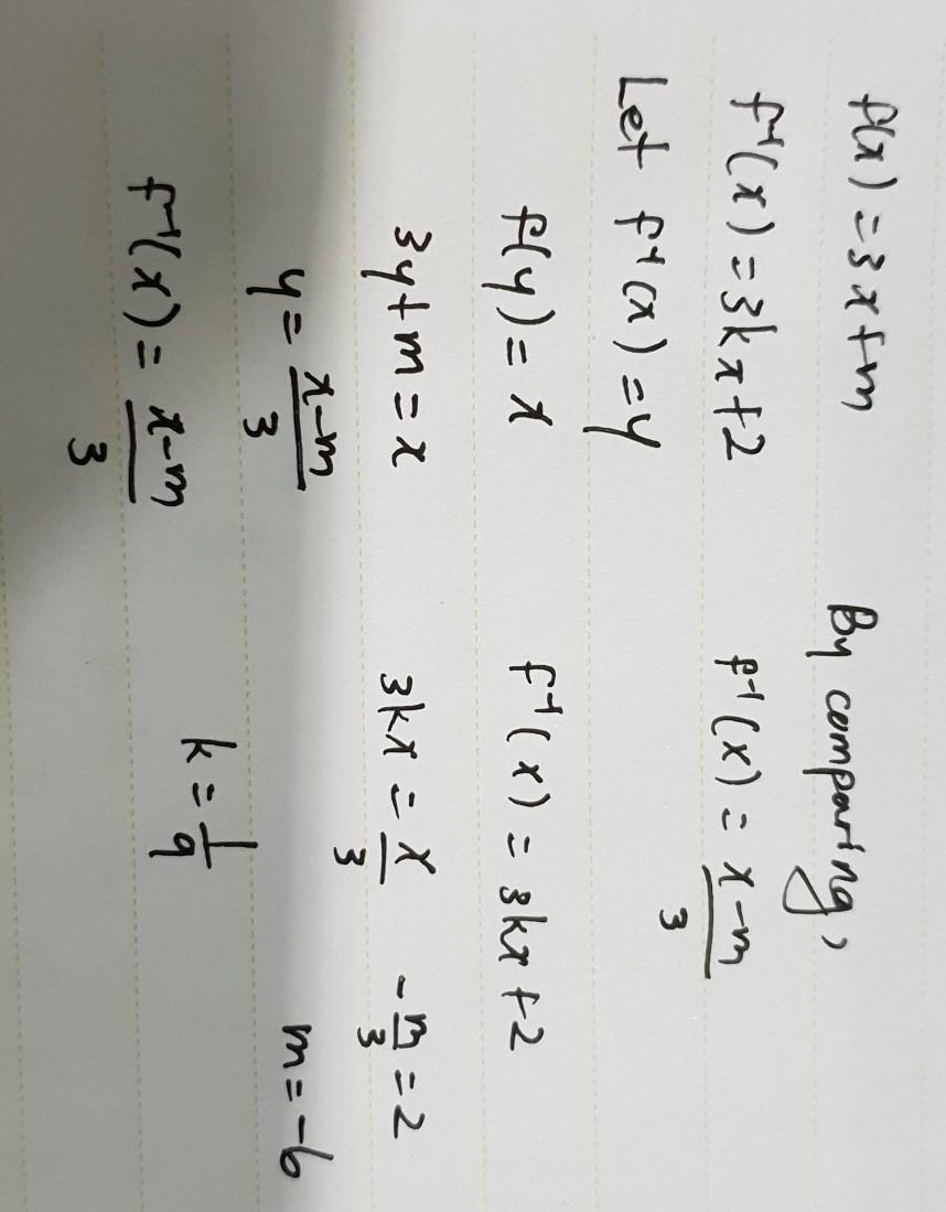 Since m and k are constants, thus by comparing two equations, we can get the value for k and m.