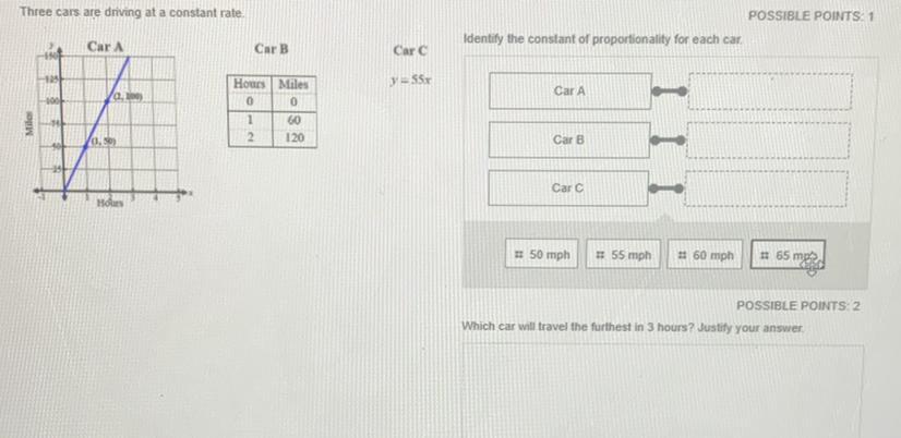 ∵ The line in the figure passes through points (0, 0) and (1, 50)