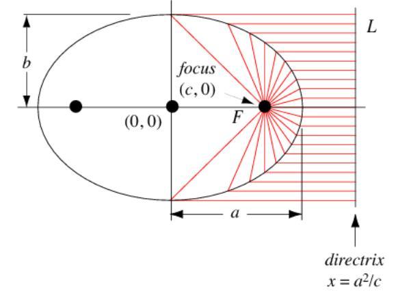 For semi-major axis "a", the distance from the center to the directrix is ...