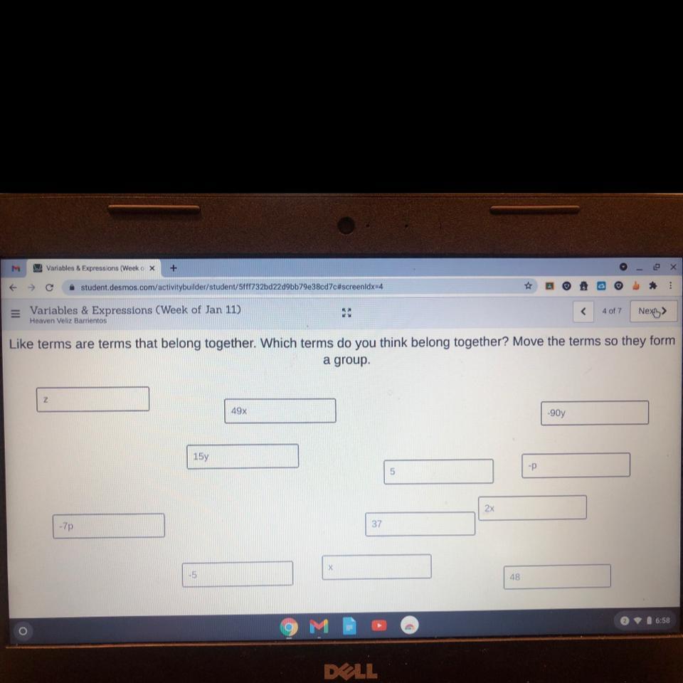 put like terms on one side of the equation. Start with the 5x, move it to the left side