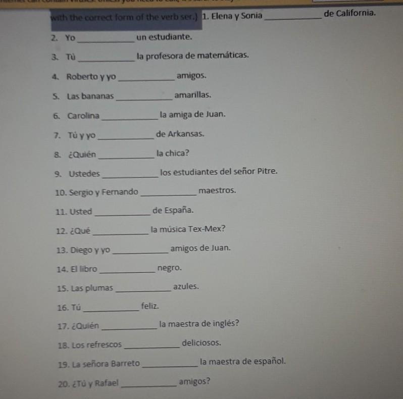 Complete the following sentences with the correct form of the verb ser