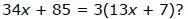 34x+85=3(13x+7)