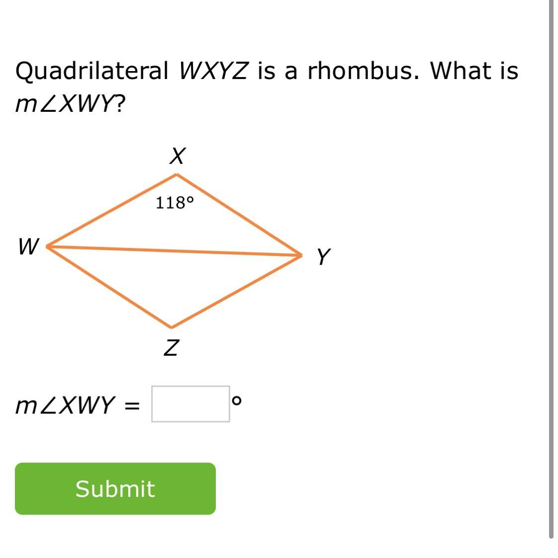 Quadrilateral WXYZ is a rhombus.What is m