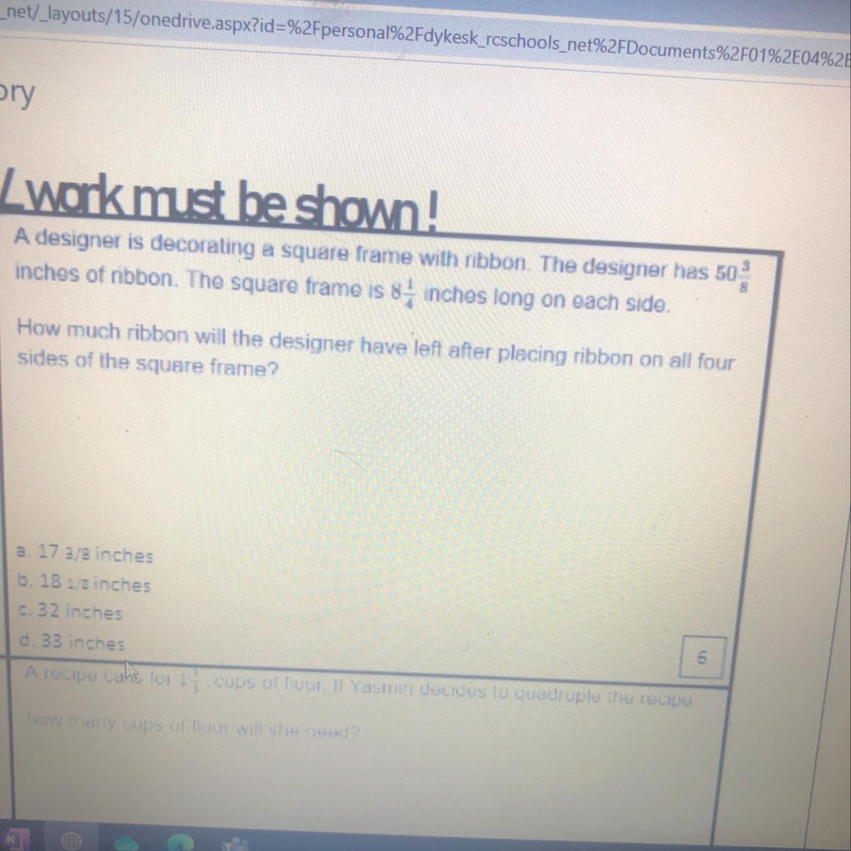Then subtract the perimeter of the square from the total length of the ribbon which is 50 inches.