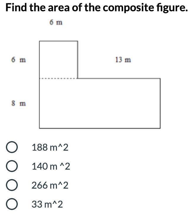 The area of the composite figure is 188 m^2