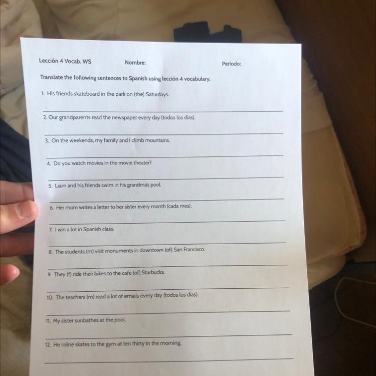 12. Inclina los patines al gimnasio a las diez y media de la mañana.