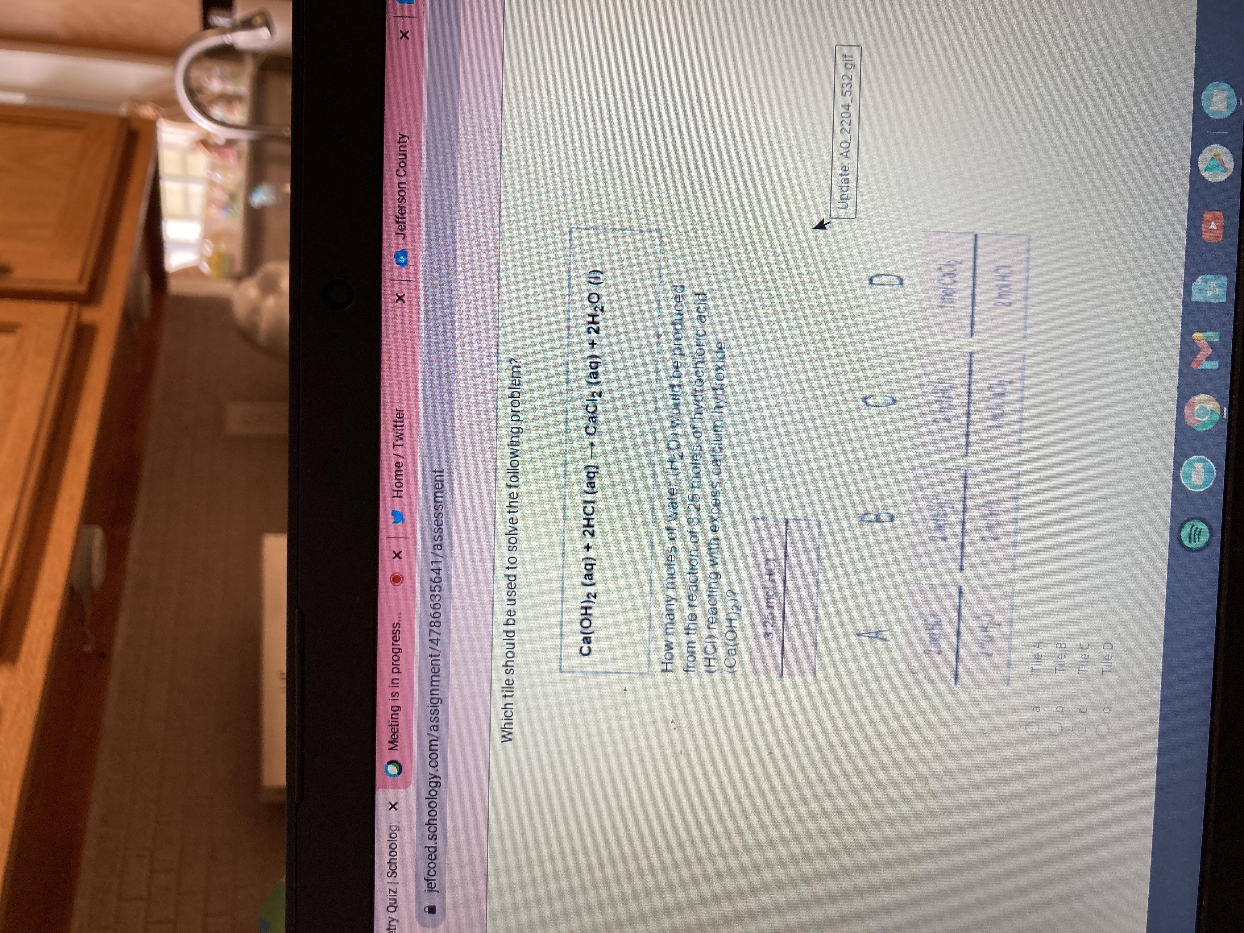 Therefore, 3.25 moles of HCl will also react to produce 3.25 moles of H2O.