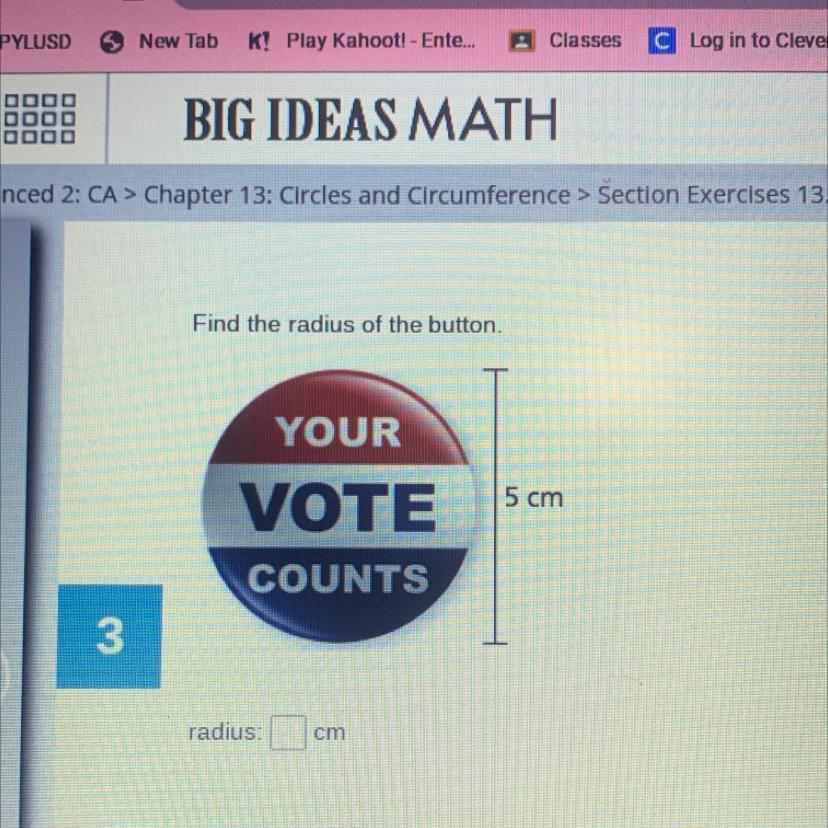 5 cm is the diameter the radius is half the diameter 5 / 2 = 2.5